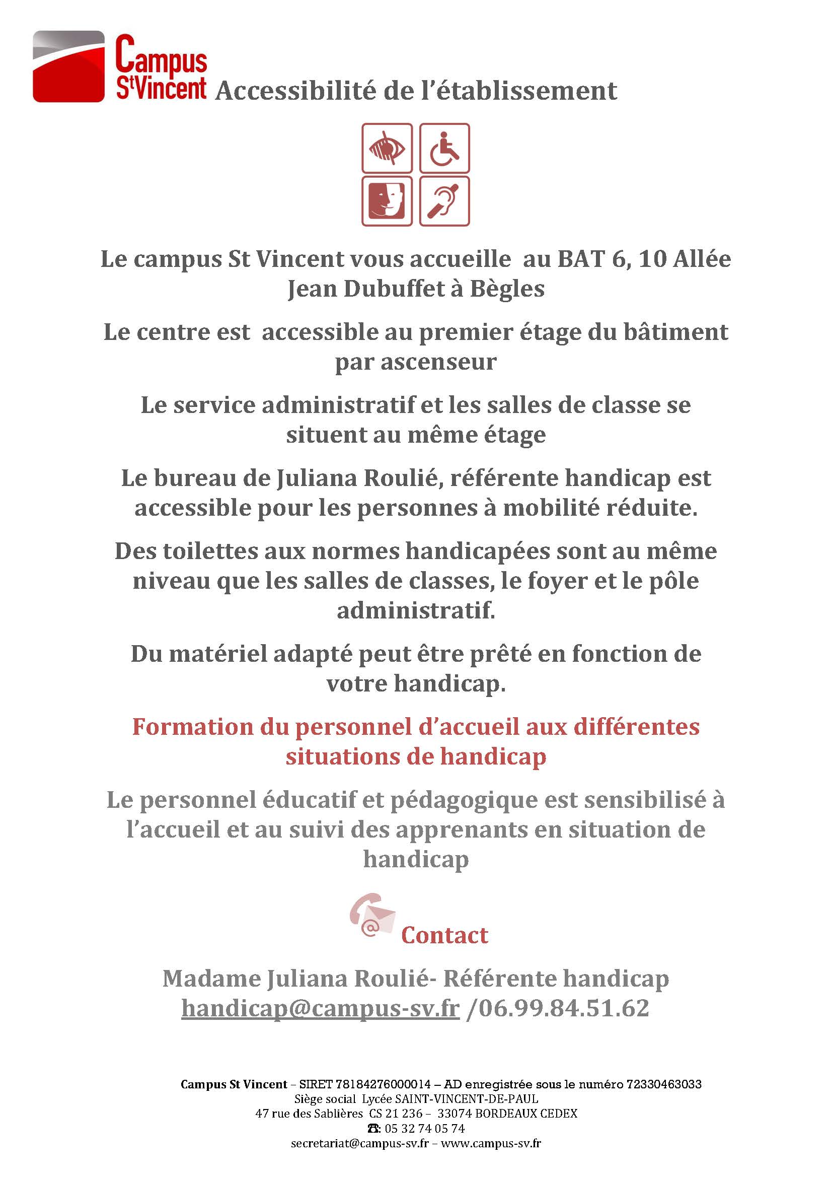 A ce titre, ils désignent sur chacun de leurs sites de formation un (ou des) référent(s) handicap, qui constitueront une ressource interne, tant auprès de la direction, que de l’équipe pédagogique, pour accompagner l’évolution des pratiques en matière d’accueil des personnes handicapées.